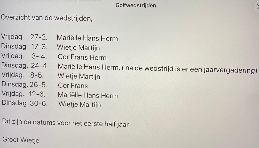 Namens de tournooicommissie hartelijk bedankt voor het deelnemen aan de golfwedstrijd.